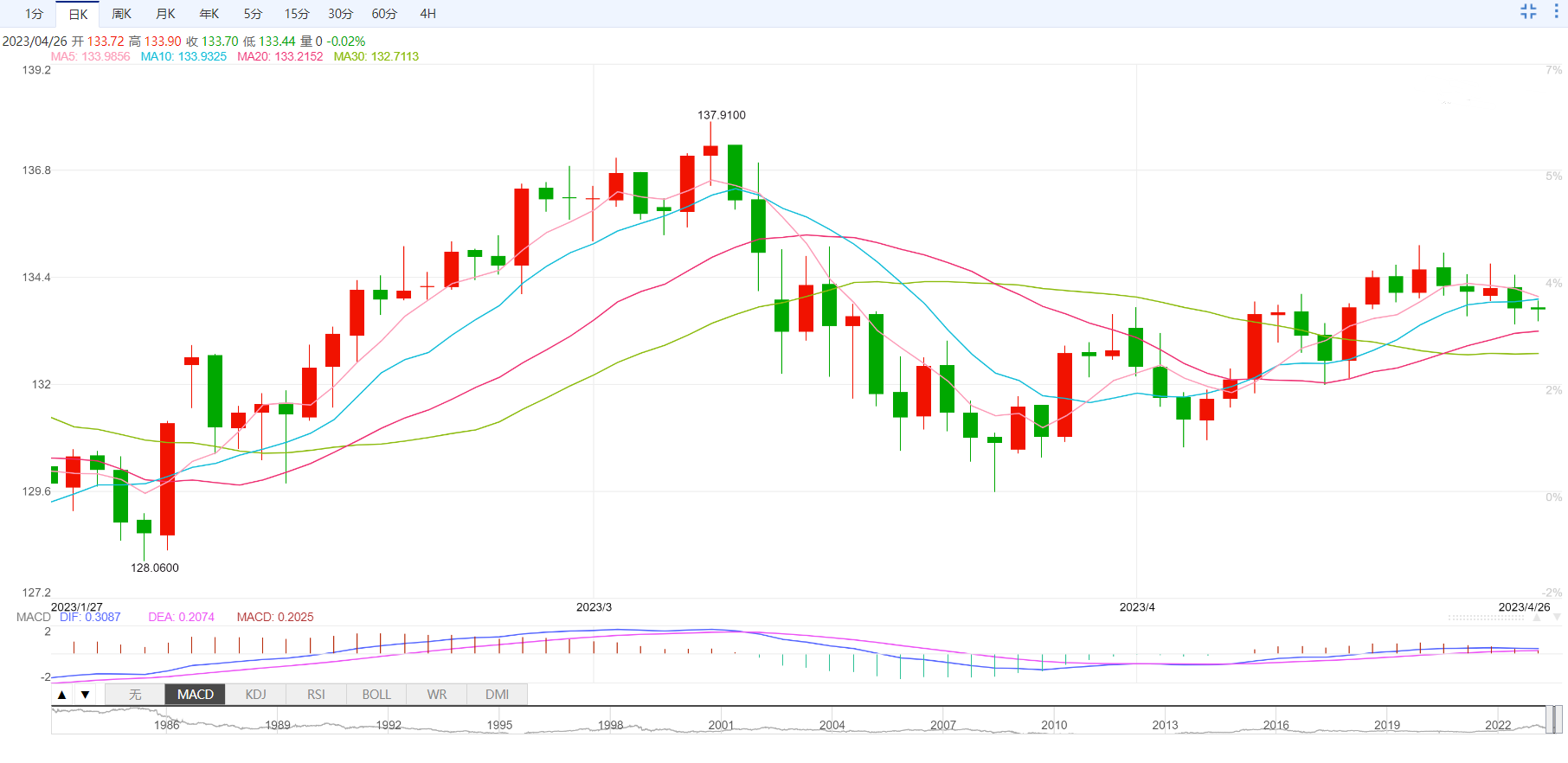 周三盘中,美元指数下跌至101.74,跌幅0.10%;欧元兑美元上涨至1.0990,涨幅0.15%;英镑兑美元上涨至1.2427,涨幅0.14%;美元兑日元下跌至133.69,跌幅0.01%;澳元兑美元下跌至0.6607,跌幅0.29%。