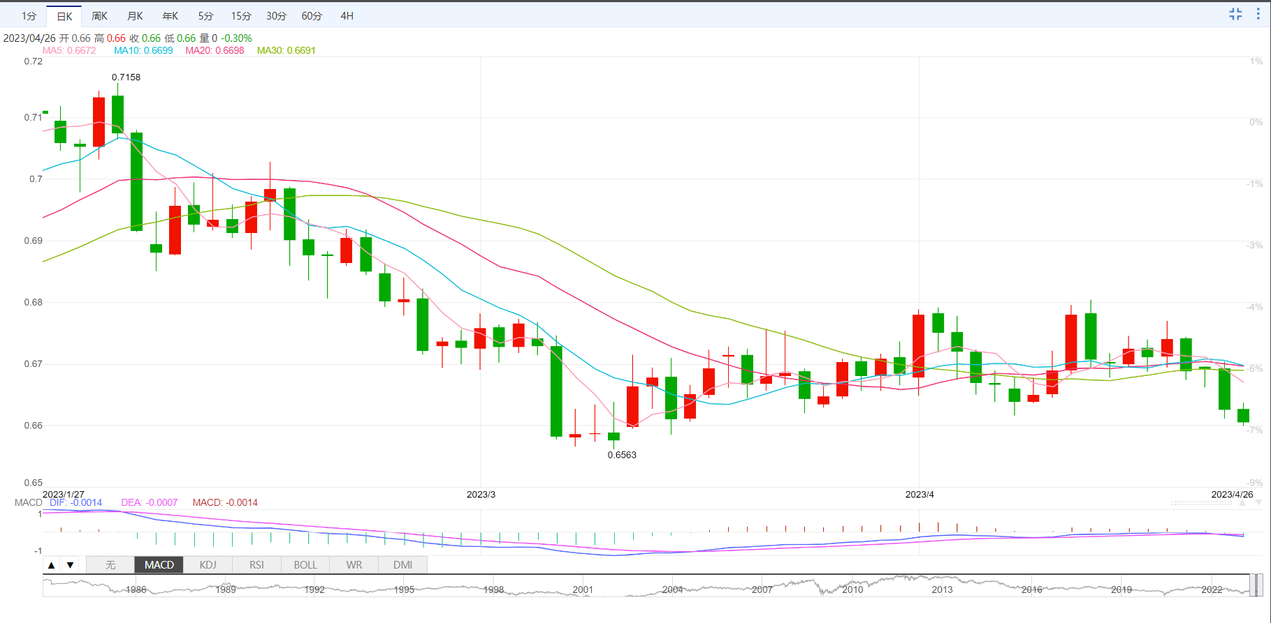 澳元一度下跌0.23%至0.6610美元,至3月中旬以来最弱水平。澳元隔夜下挫1%,因第一共和银行公布第一季存款骤减逾1000亿美元,令银行业的担忧情绪再度升温。