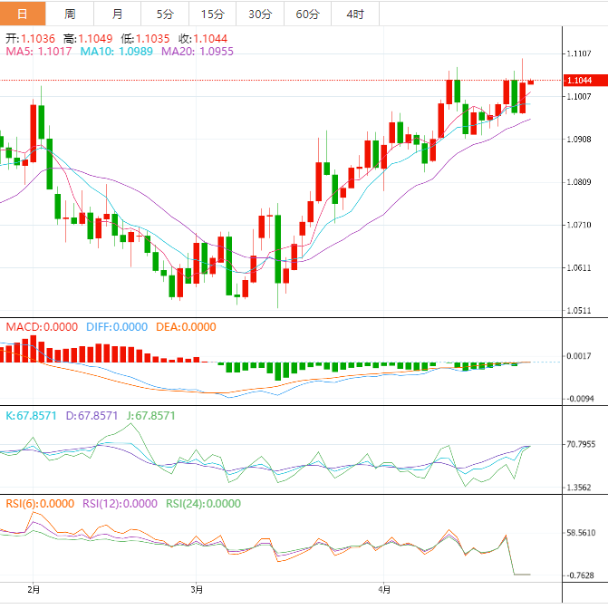 欧元:欧元/美元在前日走出的2022年3月以来的最高位附近处于守势,美国关键的第一季度(GDP)国内生产总值(GDP)之前,多头势力已经耗尽。也就是说,欧元/美元上涨,周三自数日高位的回调已经收窄,发稿时,欧元/美元跌至1.1045附近。欧元对刷新了13个月高点,但未能突破截至发稿时处在1.1090附近的2022年5月以来的上行阻力线。