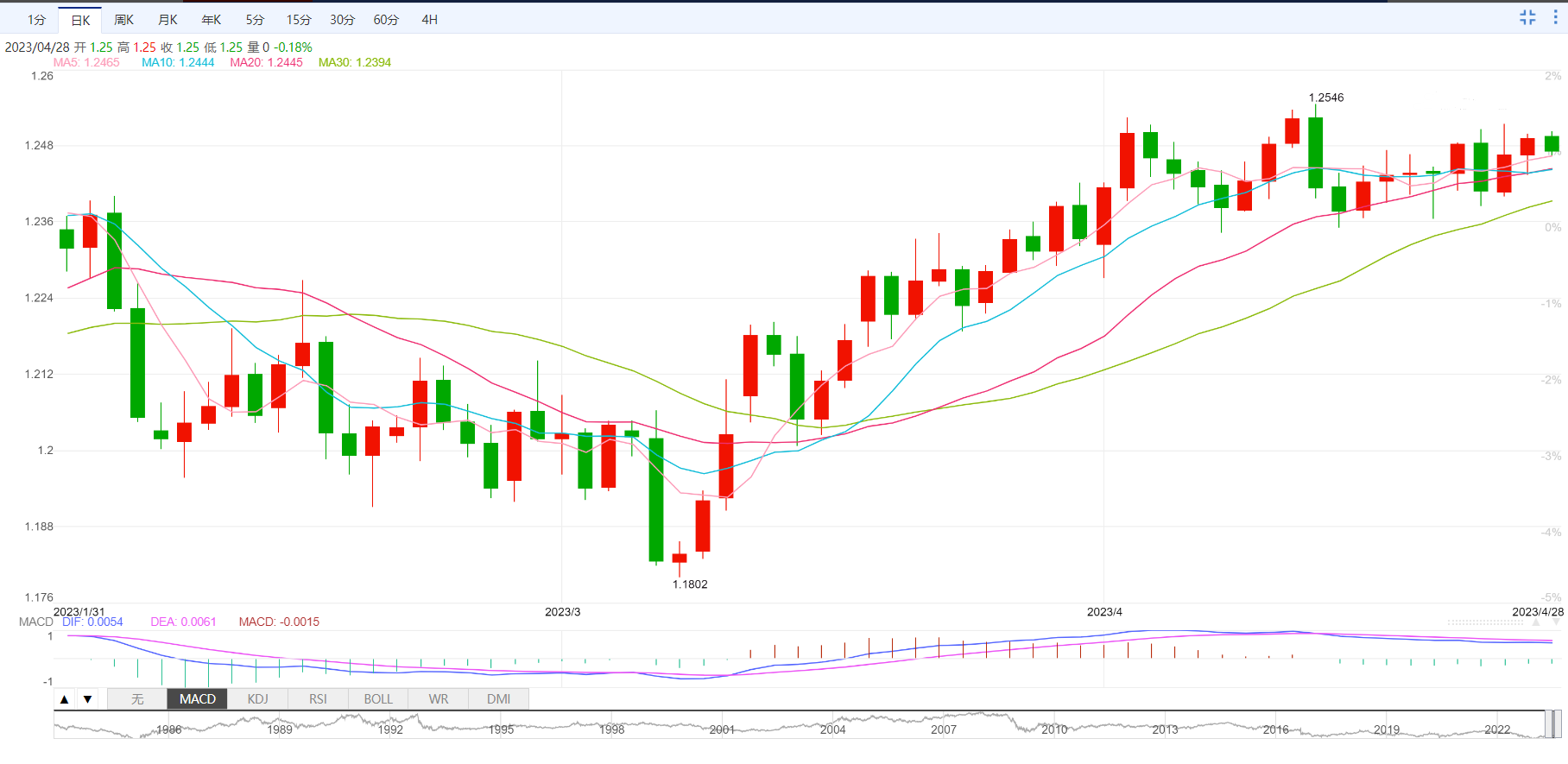 英镑/美元:截止发稿,英镑/美元走低,现报1.2478,跌幅0.01%。欧市盘前,英镑兑美元在1.2500附近的心理阻力位附近盘整。经历多次尝试失败后,英镑正积聚动能以持续性升破1.2500。英国央行进一步加息以控制两位数通胀的预期正为英镑注入新鲜血液。