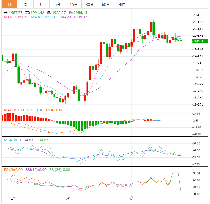 现货黄金:截止发稿,现货黄金小幅看跌,现报1986.43,跌幅0.06%。欧市盘前,黄金价格从1,976.00美元反弹后,已攀升至1,990.00美元上方。据彭博社报道,在众议院议长麦卡锡表示不处理预算就无法通过债务上限后,金价周四急剧下跌。
