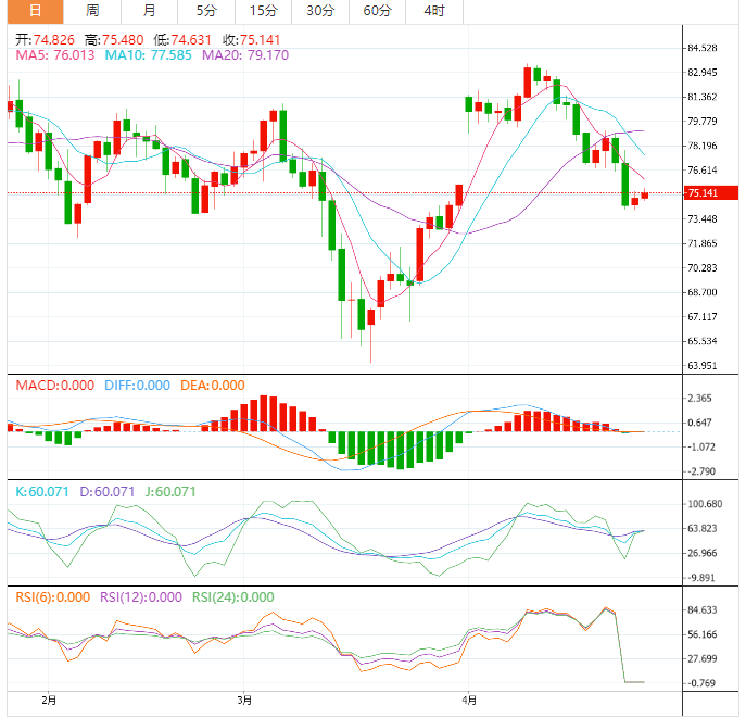 美原油:截止发稿,美原油小幅上涨,现报75.13,涨幅0.40%。欧市盘前,美原油交投于74.91美元/桶附近;油价周四上涨,收复了上一交易日的部分失地,此前俄罗斯副总理诺瓦克称全球石油市场是平衡的,且美国对俄罗斯和伊朗增加新制裁措施限制油价跌幅。