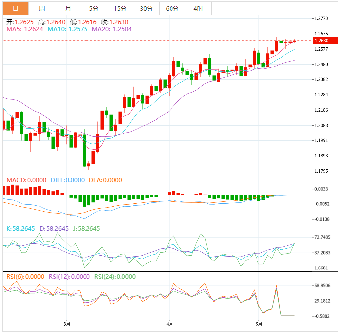 英镑:英国央行(BoE)“超级星期四”,英镑/美元多头喘息于1.2630附近。也就是说,英镑/美元前日上涨至13个月高点,同时自4月初延续的阻力反转的支撑位反弹。英镑自前值阻力线反弹,也因相对强度指标(14)走强未处在超买获得支持。然而,MACD信号看跌和周一以来的下行阻力线发稿时处在1.2635附近成为多头目标。