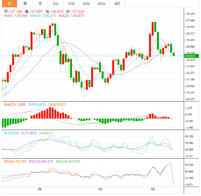 周四亚洲时段,美元指数窄幅震荡,目前交投于101.36附近。美元兑一篮子货币周三小幅回落0.2%,收报101.44,数据显示美国4月通胀放缓幅度略大于预期,但交易员对美国货币政策前景的看法并不明朗。