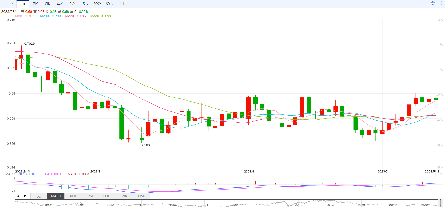 澳元/美元自盘中高位0.6800附近反转,多头很难因澳大利亚通胀前景乐观获得提振。然而,美国通胀走软,按照信息自由规定澳储行发布文件释放鹰派,让多头维持期待。值得注意的是,澳储行文件显示,澳储行现金利率在4.8%,预期到2024年底将实现通胀目标。澳大利亚和中国通胀数据公佈后市场出现初步波动后,澳元/美元投资者会关注美国4月生产者物价指数这一催化剂对澳元/美元盘面的影响,预期该指标年率将降至2.4%。