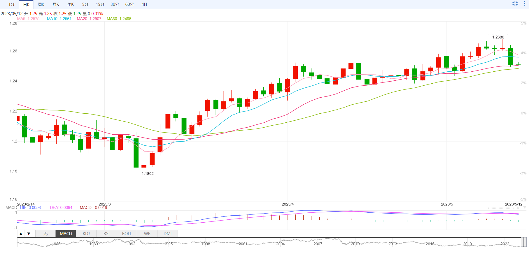 欧元/美元:截止发稿,欧元/美元小幅上涨,现报1.0931,涨幅0.14%。欧市盘前,欧元/美元自盘中高位1.0925回撤维持疲弱,欧元/美元继创下三个月来最大周线跌幅后处在整理当中。也就是说,美元最新反弹和欧洲央行缺乏确认鹰派信号,以及市场担忧美国债务上限,使欧元处在一个月最低水平附近,空头维持希望。