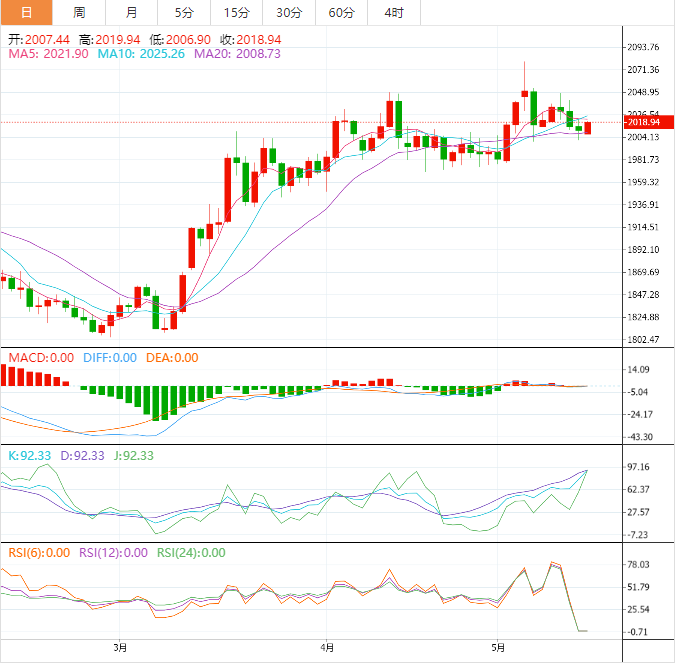 现货黄金:截止发稿,现货黄金小幅看涨,现报2019.24,涨幅0.40%。欧市盘中,黄金价格、在出现信心不足的反弹后,从2,019.00美元回落。由于美国债务上限谈判结果的不确定性,美元指数保持强势。美国总统乔·拜登宣布与共和党领导人就提高美国债务上限进行进一步谈判,以避免债务违约。