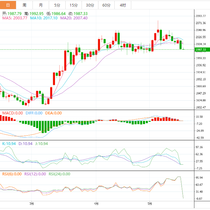 现货黄金:截止发稿,现货黄金小幅看跌,现报1987.43,跌幅0.09%。欧市盘中,金价在周三早些时候市场谨慎乐观的情况下,扭转了前一天在两週内最低水平的跌势,重新在1,993美元附近创下盘中新高。为黄金兑美元的反弹增添力量的是缺乏重大数据/事件,以及来自中国的黄金价格利好头条。