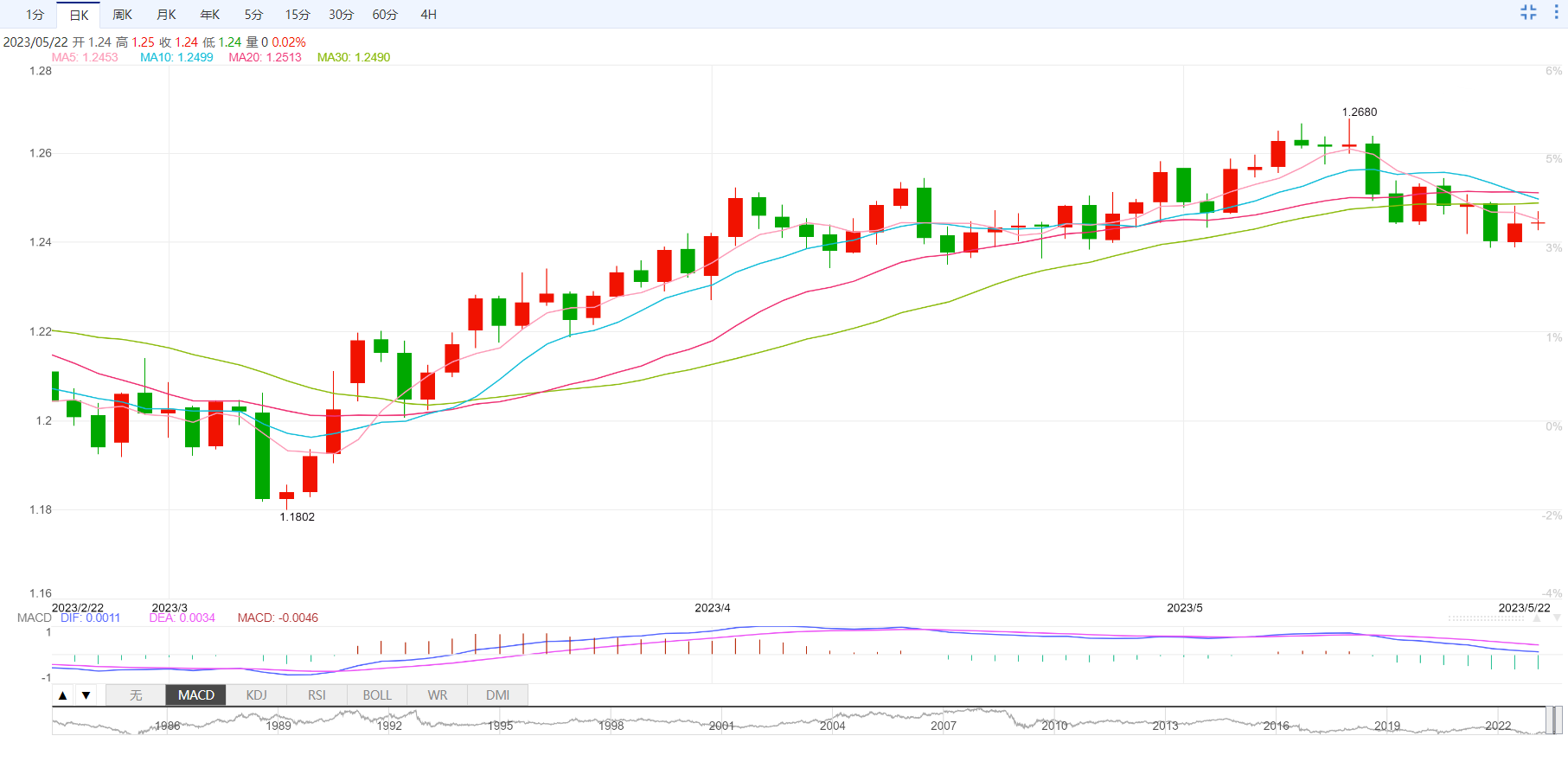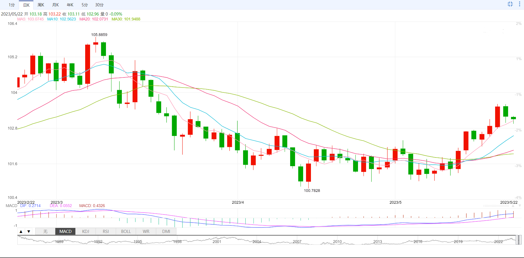 美元指数在短暂回调后重新回到103.00,美联储稳定利率政策的可能性上升,以及与美国债务上限问题有关的波动限制了美元指数的上行空间。展望未来,美联储会议纪要,5月PMI初值以及美联储青睐的通胀指标—核心PCE物价指数将是美元指数交易员关注重点。最重要的是,美国债务上限将决定美元短期行情。若美国决策者设法延长债务上限,美元指数可能会进一步上涨。