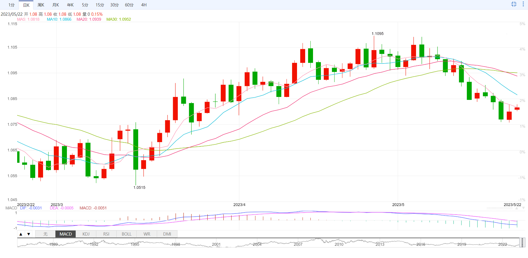 2、美元处于守势,因鲍威尔发出鸽派声音且债限谈判受挫