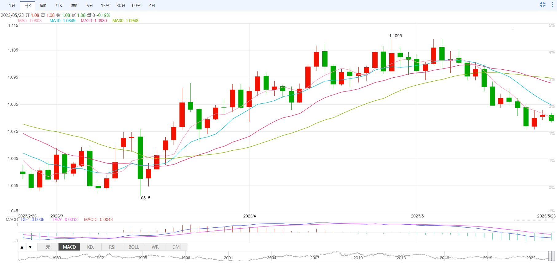 技术面:欧元/美元正试图维持在3月15日低点1.0516到4月26日高点1.1095趋势的50%斐波那契回撤位1.0806上方。20期指数移动均线(EMA)处在1.0813,对欧元多头来说构成强阻力。