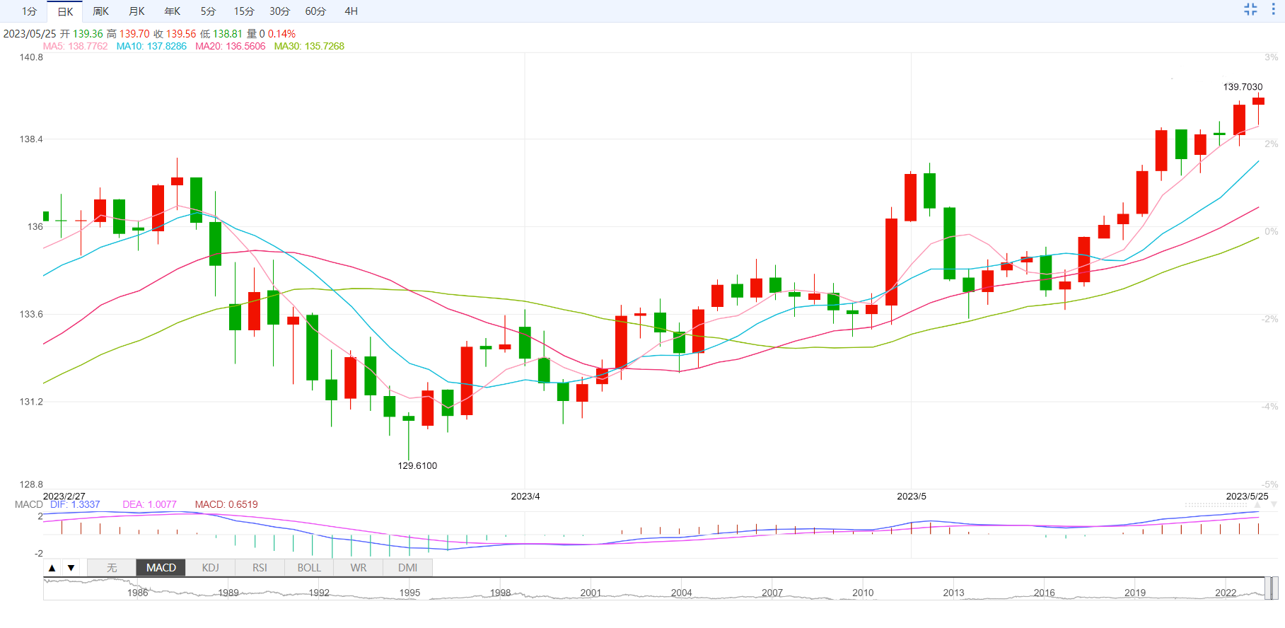美元/日元走高,刷新年线高位处在139.65-70附近。在这期间,相对强度指标(14)超买,美元/日元测试2022年10月至2023年1月跌势的50%斐波那契回撤位。除了处在139.60的50%斐波那契回撤位之外,2022年11月下旬高位139.90附近,然后是紧邻的140.00整数关,也成为多头目标。如果美元/日元突破140.00后走强,不排除美元/日元将上涨接近11月下旬震盪区间高位142.25附近的可能。