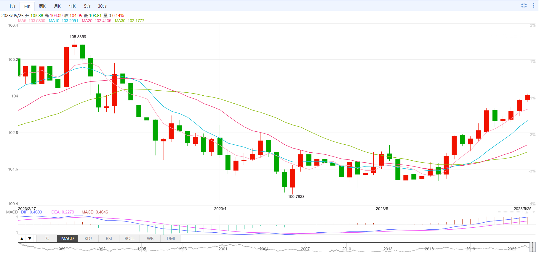 美元指数刷新两周高点104.06后,有望进一步延续上涨空间。市场似乎完全关注美国债务上限问题,而不是美联储会议纪要利率指引中的鸽派信号。美国银行业动盪,数位美联储(FED)政策制定者认为6月货币政策中加息前景不太确定。