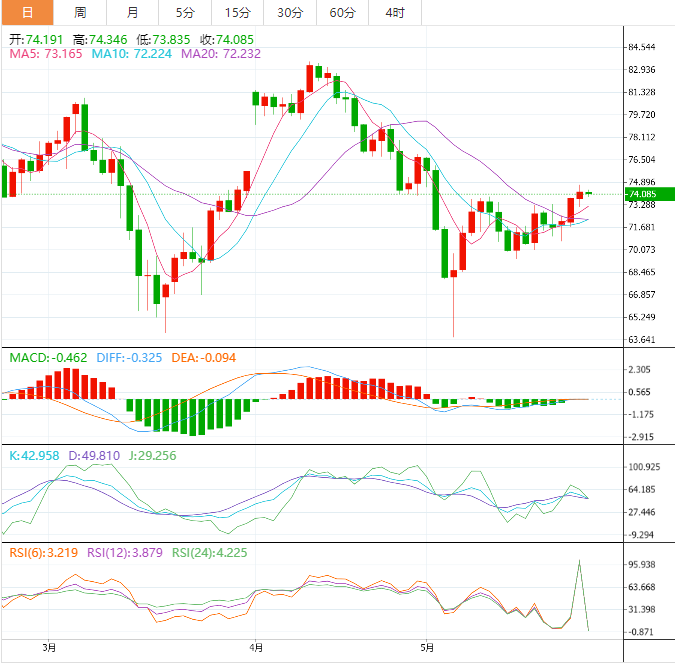 阻力位:74.45 75.15 76.53