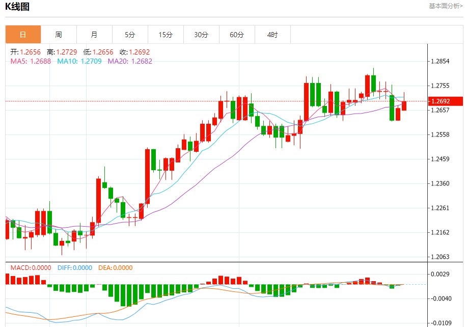 英镑/美元:截止北京时间21:20,英镑/美元上涨,现报1.2694,涨幅0.23%。纽市盘前,GBPUSD对显示出明显的看涨倾向,接近关键阻力1.2720,正如我们今天早上提到的,保持在该水平以下对今天继续预期的看跌趋势很重要,因为突破该水平将推动价格试图再次回到主要看涨轨道,而我们正在等待激活随机指标的负面影响,以刺激价格恢复其下一个目标位于1.2590的看跌波。