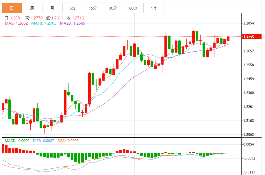 英镑:英镑/美元上涨,收报1.2741,涨幅0.26%。技术面上,汇价上行的初步阻力位于1.2761,进一步阻力位于1.2781,关键阻力位于1.2819;汇价下行的初步支撑位于1.2703,进一步支撑位于1.2665,更关键支撑位于1.2645。