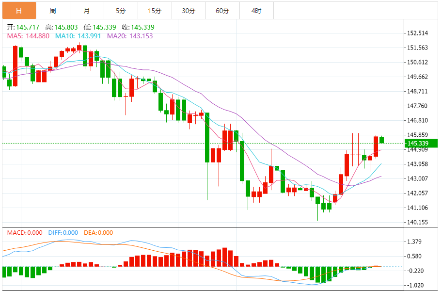 日元:美元/日元上涨,收报145.752,涨幅0.89%。技术面上,汇价上行的初步阻力位于144.887,进一步阻力位145.345,关键阻力位于146.08;汇价下行的初步支撑位于143.694,进一步支撑位于142.959,更关键支撑位于142.501。