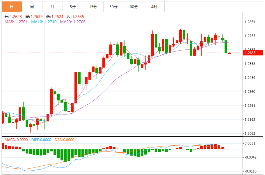 英镑:英镑/美元下跌,收报1.2635,跌幅0.71%。技术面上,汇价上行的初步阻力位于1.2755,进一步阻力位于1.2786,关键阻力位于1.2807;汇价下行的初步支撑位于1.2703,进一步支撑位于1.2681,更关键支撑位于1.2651。