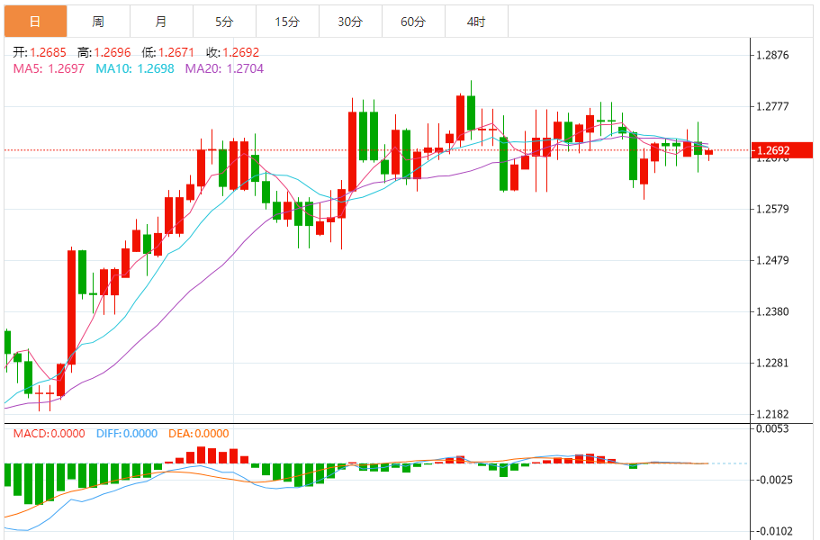 英镑:英镑/美元下跌,收报1.2685,跌幅0.18%。技术面上,汇价上行的初步阻力位于1.2738,进一步阻力位于1.2791,关键阻力位于1.2836;汇价下行的初步支撑位于1.2640,进一步支撑位于1.2595,更关键支撑位于1.2542。
