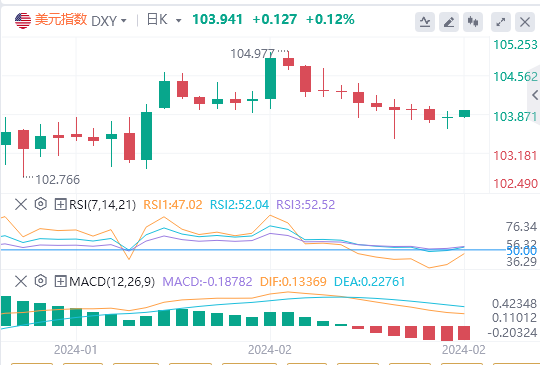 新西兰联储将现金利率维持在5.5%不变,纽元/美元下跌。澳元/美元CPI数据略有波动,截至目前,美元报价103.94。