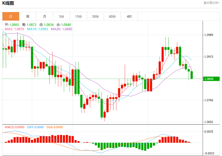 欧元/美元:截止北京时间21:26,欧元/美元下跌,现报1.0841,跌幅0.23%。纽市盘前,在前几个交易日测试1.0860水平后,欧元兑美元价格恢复其负交易,这支持了盘中预期的看跌趋势的延续,这是由现在随机指标提供的负重叠信号推动的,我们认为实现我们等待的主要目标1.0765的道路是开放的。