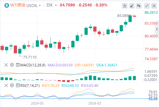 技术面:如果WTI原油收于阻力位85.50美元-86.50美元上方,它将走向下一个重要阻力位,即94.00美元-95.00美元区间。
