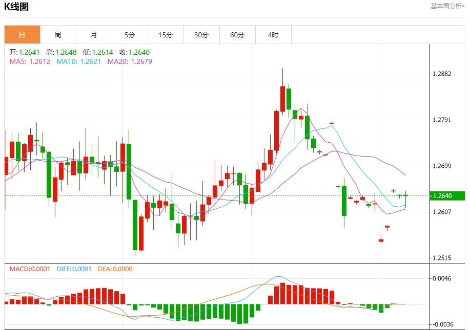 英镑/美元:截止北京时间20:21,英镑/美元下跌,现报1.2641,跌幅0.02%。纽市盘前,GBPUSD价格在EMA50附近波动,形成了良好的盘中支撑。等待恢复正交易以测试1.2700美元水平作为第一个正站。