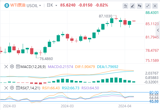 技术面:从技术角度来看,WTI原油继续试图收于阻力位85.50美元至86.50美元上方。