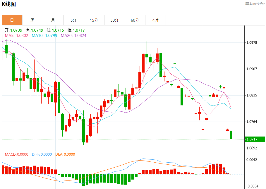 欧元/美元:截止北京时间20:24,欧元/美元下跌,现报1.0718,跌幅0.23%。纽市盘前,欧元对美元现在显示出新的负面交易,试图恢复今天的预期看跌趋势,我们认为目标1.0645美元是下一个主站,等待获得负面动机,帮助推动价格达到预期目标。