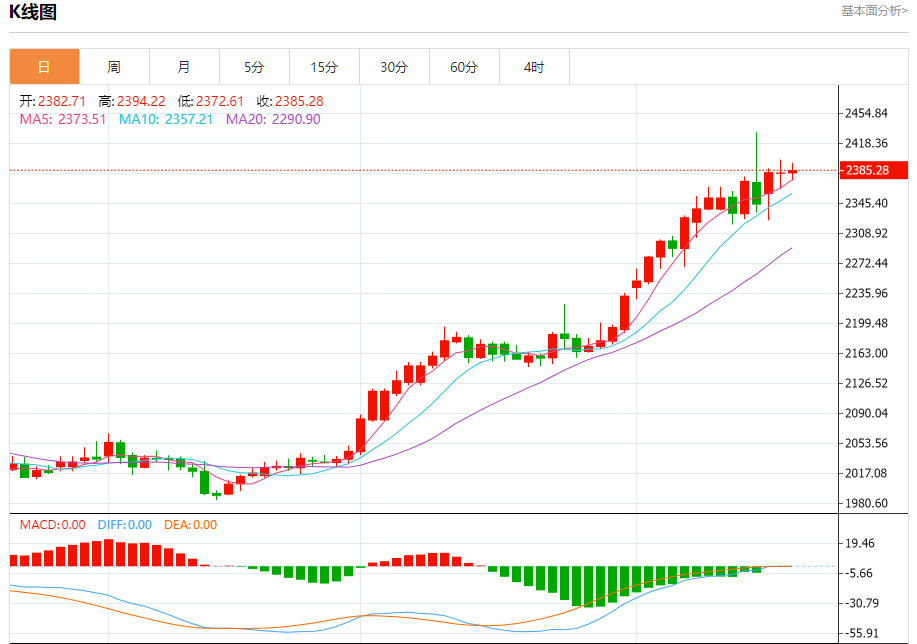现货黄金:截止北京时间20:18,现货黄金上涨,现报2385.27,涨幅0.12%。纽市盘前,黄金价格现在交易积极,试图恢复今天预期的看涨趋势。等待突破2400.00美元水平,以加强积极的情景。