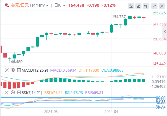来自日本的数据显示,3月份日本全国消费者物价指数(CPI)同比增长2.7%,略低于2月份2.8%的增幅。这一数据符合市场预期。与此同时,日本央行(BOJ)行长植田和男(Kazuo Ueda)表示,如果日元贬值大幅提高通胀率,他们可能会再次加息,这凸显了货币走势可能对下一次政策转变的时机产生的影响。美元/日元当天早些时候急剧跌向 153.50 点,之后回调,最后在 154.50 点附近几乎持平。