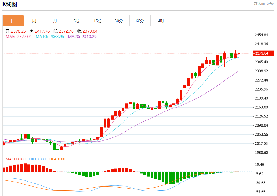 现货黄金:截止北京时间20:22,现货黄金上涨,现报2379.77,涨幅0.05%。纽市盘前,金价在测试看涨通道的阻力线后面临暂时的负面压力。它现在在2385.00美元左右波动,而EMA50继续为价格提供积极的支持。