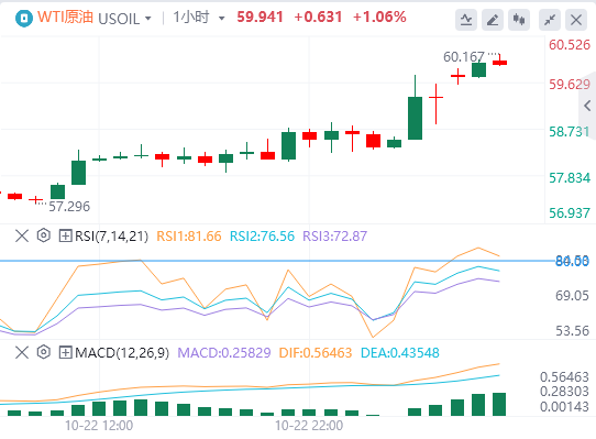 周四亚盘,原油交投59.94附近。路透社周三报道称,美国总统唐纳德·特朗普政府对俄罗斯主要石油公司实施制裁,并指责俄罗斯人缺乏对结束乌克兰战争的承诺。对俄罗斯的制裁可能会限制其向全球市场的原油出口,引发人们对全球供应收紧的担忧,并推高WTI价格。