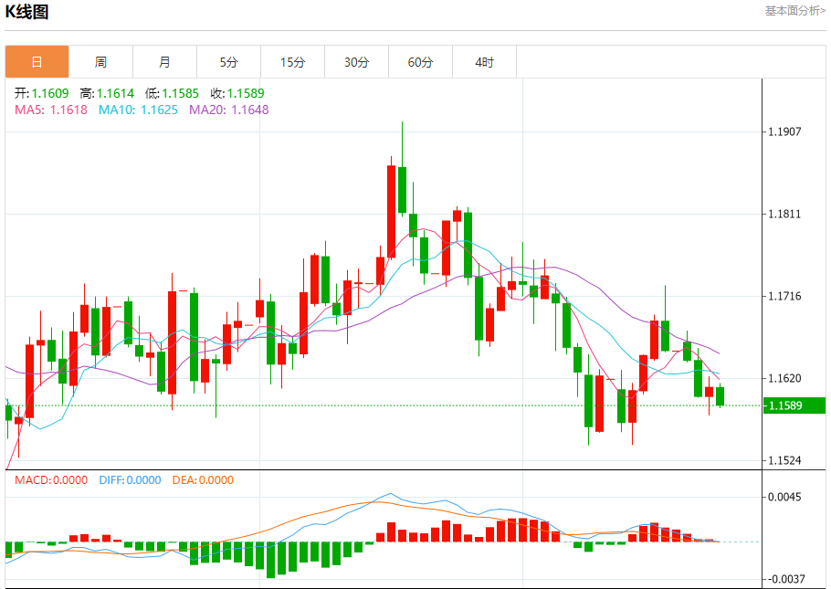 欧元/美元:截止北京时间20:23,欧元/美元下跌,现报1.1590,跌幅0.18%。纽市盘前,在其最近的日内交易中,(EURUSD)的价格下跌,在达到过度超买水平后,相对强弱指标出现负面信号,同时由于其交易价格低于EMA50,负面压力持续存在,再加上短期内空头趋势占据主导,以及其沿趋势线交易。