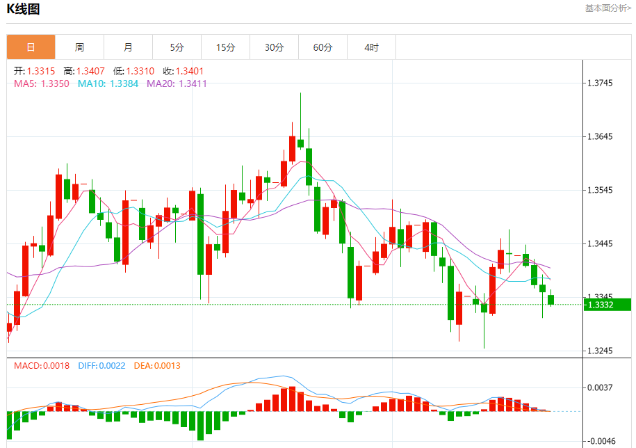 英镑/美元:截止北京时间20:23,英镑/美元下跌,现报1.3333,跌幅0.17%。纽市盘前,由于英镑兑美元(GBPUSD)价格在最近一次日内交易中延续了其在EMA50下方交易所带来的负面压力,这加强了短期内主要看跌趋势的稳定性和力度,特别是价格沿趋势线交易的情况下。此外,在相对强弱指标上出现了负面交叉,在价格走势相比下达到过度超买水平之后,进一步加剧了下行压力。
