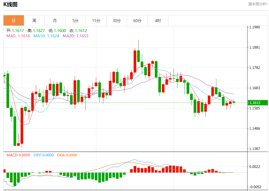 欧元/美元:截止北京时间20:23,欧元/美元下跌,现报1.1614,跌幅0.04%。纽市盘前,在欧元/美元(EURUSD)价格的最后一次日内交易水平上,价格出现波动,本轮波动是在其交易低于EMA50所带来的持续负面压力的背景下发生的,同时也受到短期内主要看跌趋势稳定性的增强,尤其是其沿趋势线交易时。此外,在达到超买水平之后,相对强弱指标出现了负面信号。