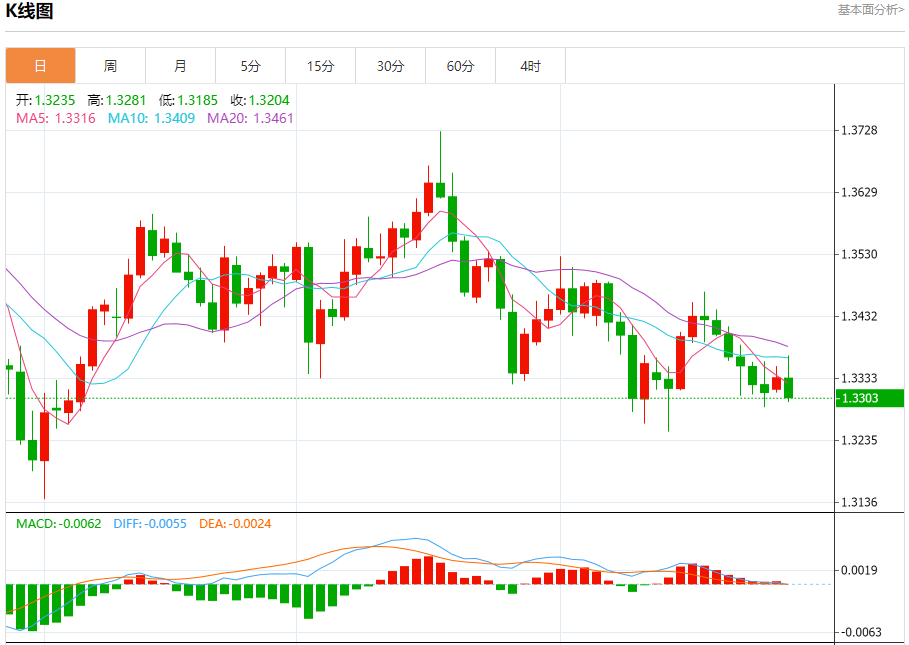 英镑/美元:截止北京时间20:23,英镑/美元下跌,现报1.3304,跌幅0.24%。纽市盘前,(GBPUSD) 在其最后一次日内交易中价格上涨,受到相对强弱指标的积极信号支持。该货币对正试图在短期内修正主要的下跌趋势,但由于其交易价格低于EMA50,负面压力仍在持续,这降低了价格在未来一段时间内恢复的机会。特别是相对强弱指标在价格走势对比下达到超买水平,这暗示可能形成负向背离,从而加剧负面压力。