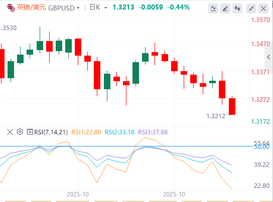 英镑/美元在周二下跌近0.5%后仍面临看跌压力,交投于1.3250下方的8月初以来最低水平。
