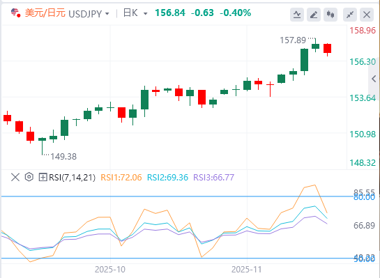 在亚洲交易时段,日本的数据表明,10月份出口同比增长3.6%,进口增长0.7%。此外,11月份的Jibun银行制造业PMI从10月份的48.2小幅上升至48.8,而服务业PMI保持在53.1不变。与此同时,日本首相高市早苗的内阁批准了一项21.3万亿日元(约1354亿美元)的经济刺激计划。美元/日元在周五欧洲早盘小幅下滑,但仍保持在157.00以上。