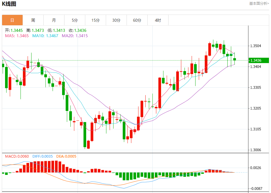 英镑/美元:截止北京时间21:20,英镑/美元下跌,现报1.3438,跌幅0.16%。纽市盘前,GBPUSD在最后一个交易日下跌,在短期基础上打破了主要的看涨趋势线,使其面临负面压力,这种压力因超过EMA50的支撑而加剧,增强了在短期内扩大损失的可能性,在卸载其超卖条件后,相对强度指标出现了负面信号。