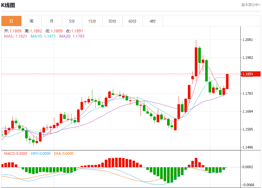 欧元/美元:截止北京时间21:20,欧元/美元上涨,现报1.1891,涨幅0.64%。纽市盘前,欧元兑美元的价格在最后一个交易日上涨,突破了1.1835阻力,这代表了积极的技术短期形成(双底模式),这可能有助于它延长其盘中涨势,另一方面,价格达到EMA50的阻力,这减少了其最后的涨势,此外,在达到超买水平后,相对强度指标上出现了负重叠信号。