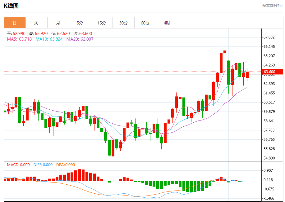 原油市场:截止北京时间21:20,美油上涨,现报63.590,涨幅0.11%。纽市盘前,(原油)价格在最后一个盘中交易中上涨,超过了EMA50的阻力,摆脱了其负面压力,增强了扩大这些盘中涨幅的机会,特别是在短期主要看涨趋势占主导地位的情况下,其交易沿着该轨道的支撑趋势线进行,此外,相对强度指标出现了积极信号。