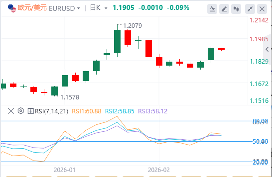 欧元兑美元周一上涨超过0.8%,抹去了上周的跌幅。该货币对在欧洲早晨仍处于盘整阶段,约在1.1900附近。周一欧元区数据显示,Sentix投资者信心指数从一月份的-1.8提升至2月份的4.2。