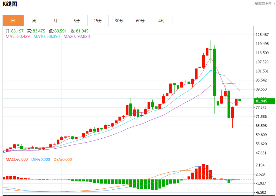 现货白银:截止北京时间21:20,现货白银下跌,现报81.944,跌幅1.59%。纽市盘前,在达到超买水平后,由于短期熊市浪潮占主导地位,白银价格在相对强势指标出现负面信号的情况下,在最近的盘中水平上出现有限和谨慎的上涨,并且由于交易低于EMA50,白银价格面临负面压力,降低了价格在近期恢复的机会。