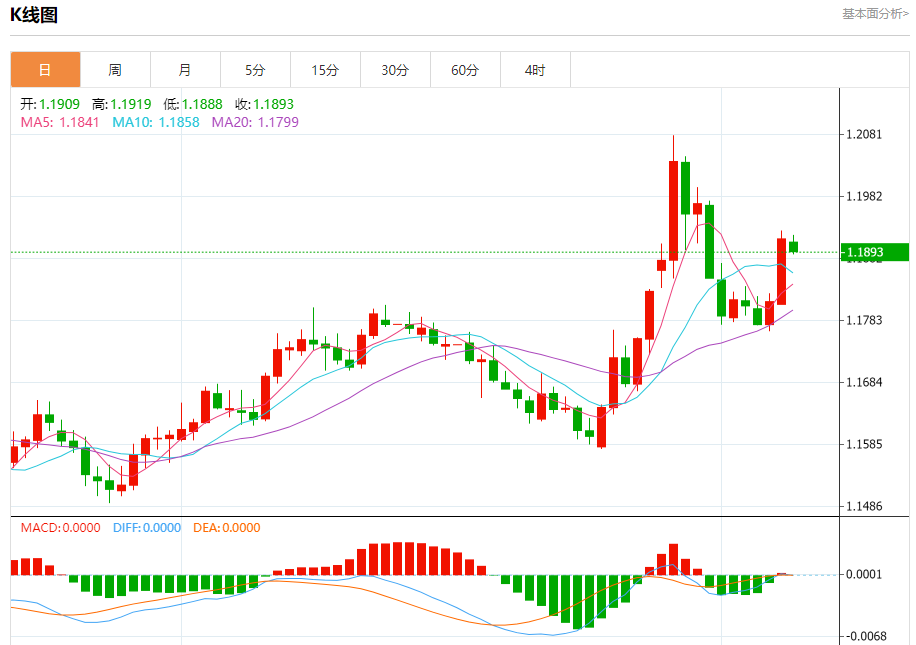 欧元/美元:截止北京时间21:20,欧元/美元下跌,现报1.1894,跌幅0.18%。纽市盘前,欧元兑美元的价格在最后一个交易日上涨,在卸载了相对强度指标上的一些超买条件后,保持稳定在1.1900上方,其在EMA50上方的交易所代表的动态支持继续存在,加强了其在近期基础上上涨的机会,受近期基础上积极的技术形成(双顶模式)的影响,这表明了熊市纠正波。
