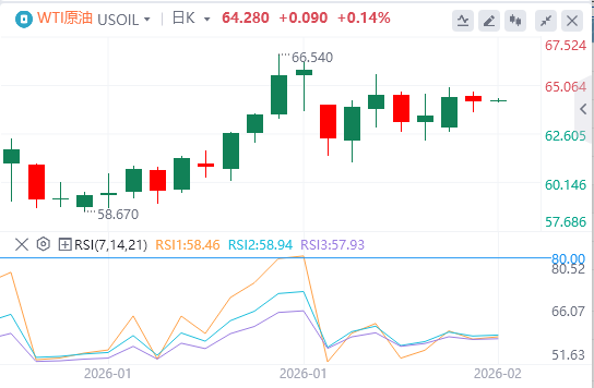 周三亚盘,原油交投64.28附近。油价周二下跌,市场等待伊朗与美国谈判进展、乌克兰局势动向以及美国经济数据和原油库存报告提供指引。交易员在外交局势明朗前保持观望,关注霍尔木兹海峡运输安全。伊朗表示核谈判显示出足够共识以继续推进。欧盟计划向俄罗斯提出让步要求以结束乌克兰战争。美国经济数据方面,12月零售销售意外持平,市场关注即将公布的非农就业与通胀数据。原油库存方面,分析师预计上周美国原油库存小幅增加10万桶。