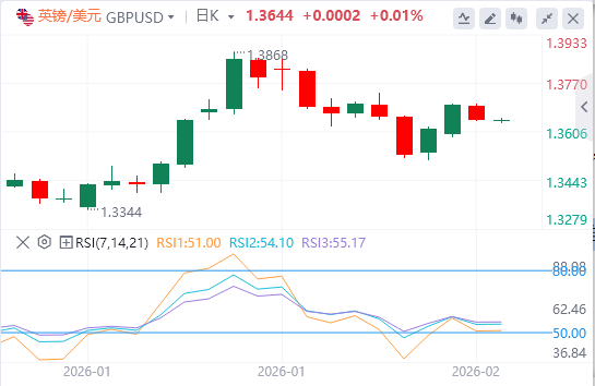 欧元:截至发稿,欧元/美元徘徊在1.1899附近。欧元兑美元更多受美国发展驱动,而非欧元区外的任何表现。除非美联储对2026年利率路径提供更明确的指引,或欧元区呈现更具说服力的周期性上行,否则任何上涨空间都可能保持缓慢,而非形成干净果断的突破。技术面上,欧元兑美元继续尝试在1.1900–1.1915阻力位上方收稳。如果EUR/USD能在1.1915以上收稳,将朝下一个阻力位1.1985–1.2000移动。RSI接近超买区间,但短期内仍有足够空间获得动能。