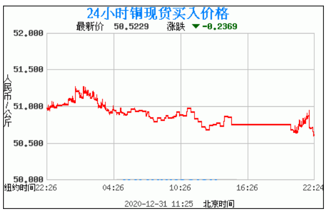 今日最新铜价:50.5229 涨跌:-0.2369