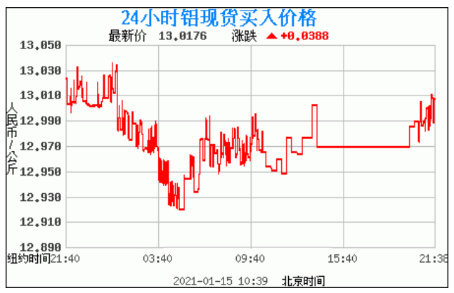 今日最新铝锭行情:13.0176