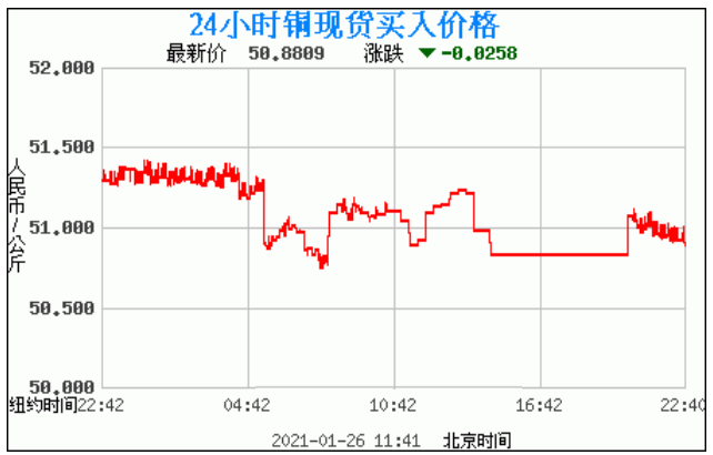 今日最新铜价:50.8809 涨跌:-0.0258